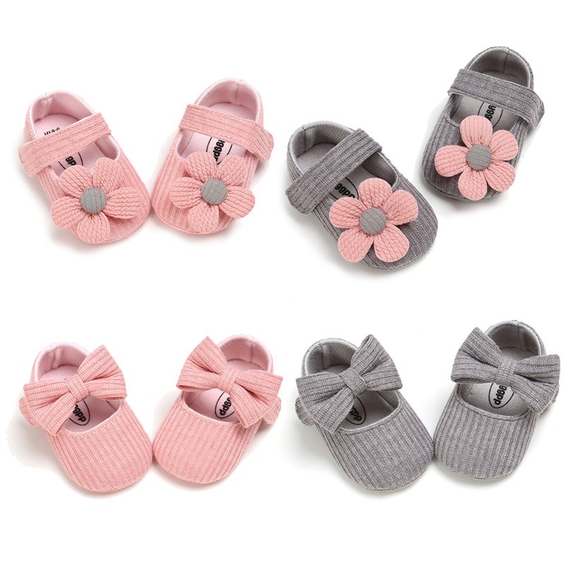 Giày đế mềm chống trượt đính họa tiết hoa xinh xắn cho bé gái free ship